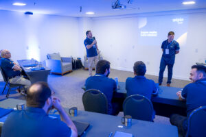 A programação seguiu com conteúdos técnicos. Felipe Scozziero e Misael Mendes, Coordenador de Tecnologia, apresentaram as novas soluções e os avanços tecnológicos da Aépio, com destaque para os desenvolvimentos em telemetria. Na sequência, o Gerente Comercial LATAM, Luis Tinello, introduziu as diferentes tecnologias de medição de água e apresentou as linhas de hidrômetros nas quais a Aépio vem ampliando sua atuação.