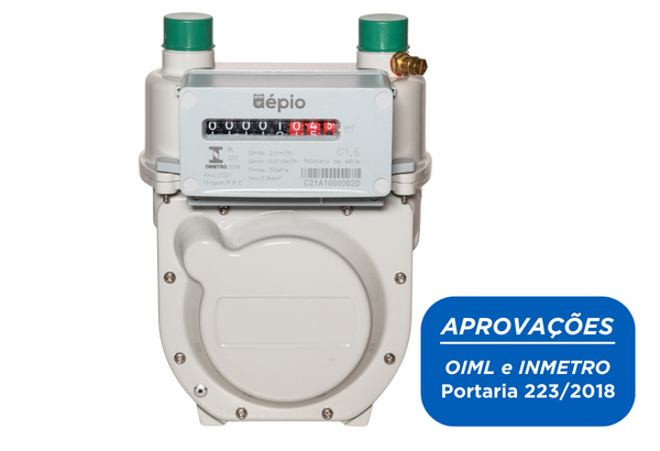 Medidor de gás de princípio de medição volumétrico, composto por quatro câmaras de diafragma, que se movem alternadamente.